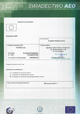 Status przedsiębiorstwa AEO dla FERRO