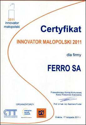 Nagroda jest dowodem na to, iż według Pulsu Biznesu – organizatora rankingu, firma FERRO S.A. charakteryzuje się niezwykle dynamicznym rozwojem i ciągłym przyrostem obrotów. Ciesząc się doskonałą reputacją, prezentuje najwyższe wzorce działania w stosunku do swoich kontrahentów, partnerów biznesowych, skarbu państwa.