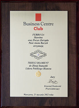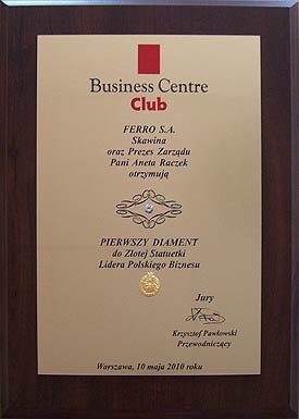 7 października 2013 roku, na spotkaniu członków Małopolskiej Loży Business Centre Club firma FERRO odebrała Dyplom Ambasadora Polskiej Gospodarki 2013.