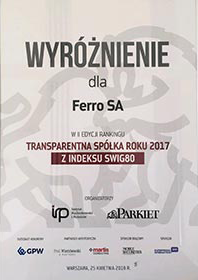 Z ogromną radością pragniemy poinformować, iż spółka FERRO już po raz drugi znalazła się w gronie liderów Rankingu Transparentna spółka 2017, adresowanego do  spółek giełdowych.