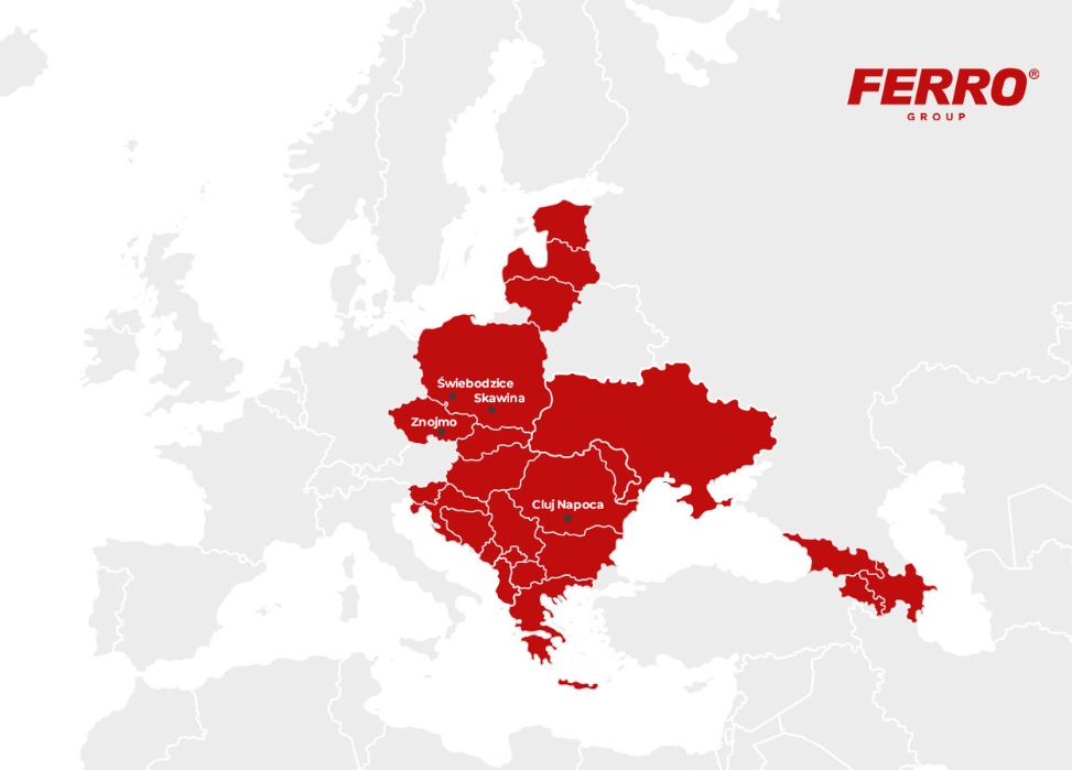 Obecnie poza działalnością na terenie Polski, Grupa FERRO sprzedaje swoje produkty na licznych rynkach zagranicznych. Grupa FERRO posiada spółki i centrum magazynowo-logistyczne w Polsce, zakład produkcyjny, centrum magazynowo logistyczne i spółki w Czechach, oraz spółki w Rumunii, Mołdawii, Bułgarii, Chorwacji, Macedonii, Bośni i Hercegowinie, Czarnogórze, Litwie, Łotwie, Estonii, na Węgrzech i Słowacji.